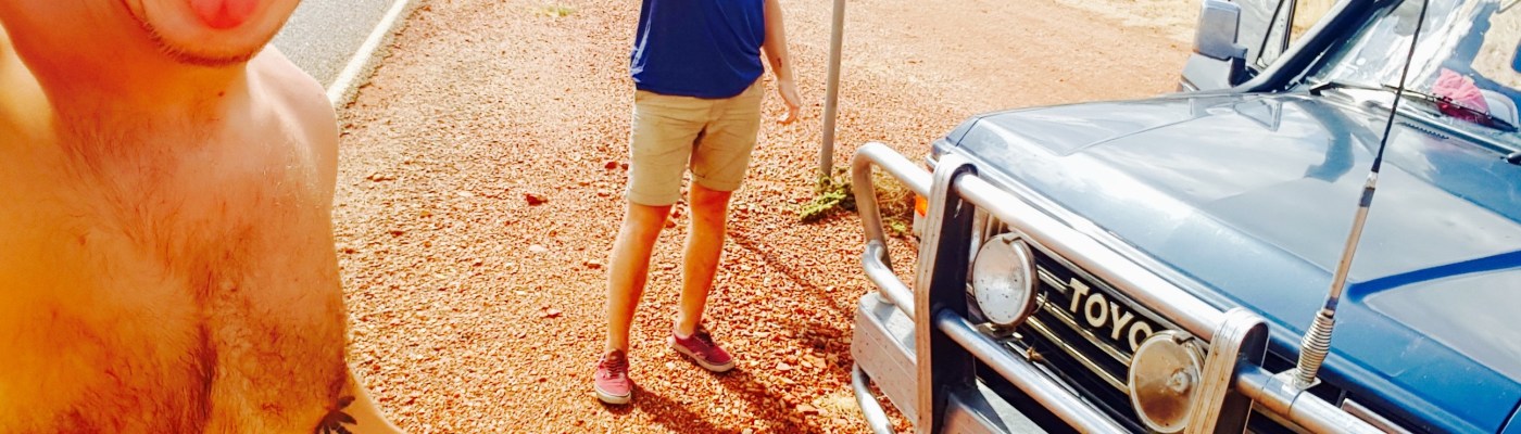 WE PICKED UP ANDRE FROM INDONESIA IN TONSVILLE BEFORE WE TOOK THE TURN TOWARDS THE DESERT. 2500 KM OF STRAIGHT ROAD ARE AHEAD OF US. LUCKY THAT MICHAELS 64GB IPHONE IS FULL OF TUNES